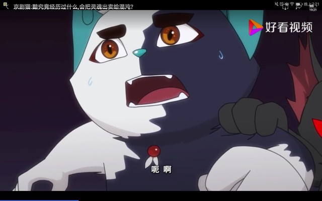 作者这个我实在不知道怎么写,大家如果真想知道就直接去看京剧猫58集,很后面的时候白糖就会有那个声音,根本就不知道怎么写,反正就是像很害怕的那种,就跟我下面发的这张图一样,往前推一点点就可以了😄,实在不行就自行想象咯