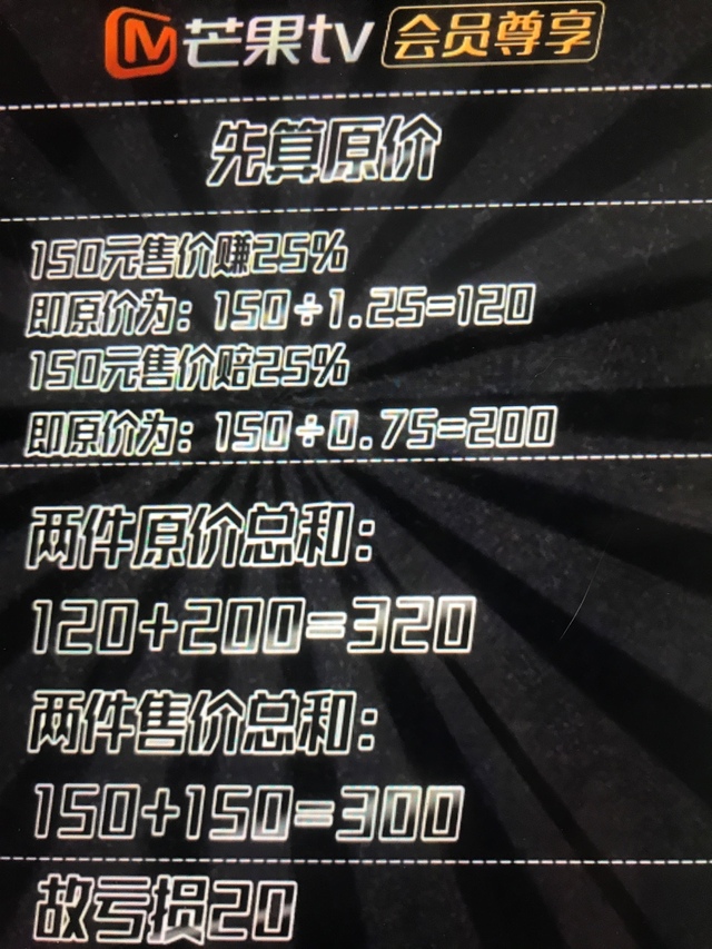 蒲熠星用一百五除以百分之一百二十五,呵一百五十除以百分之七十五,得到商品的原价。