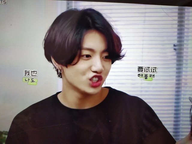 田柾国这个时候学着他家二哥闵玧其的动作也把嘴巴撅起来,放松嘴巴,旁边的成员也开着嗓子
