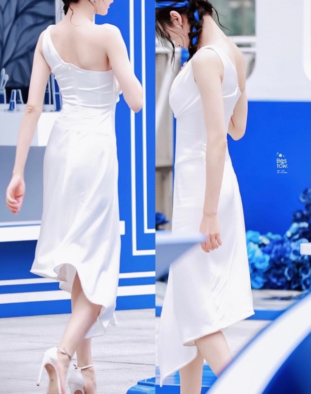 修长的大腿穿着一条白色中长款的裙,显出身材的完美绝伦。