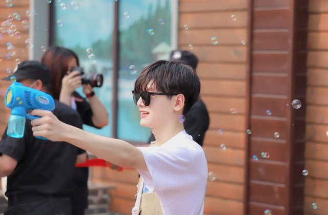 张颜齐看着你们玩这极为幼稚的泡泡机吐槽道