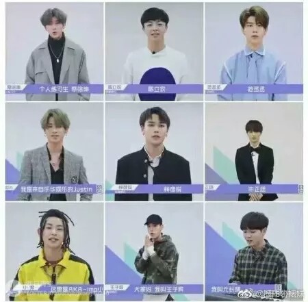 刷了会微博,知道了当时出道的九人分别是蔡徐坤,陈立农,范丞丞,黄明昊,林彦俊,朱正廷,王子异,王琳凯,尤长靖。