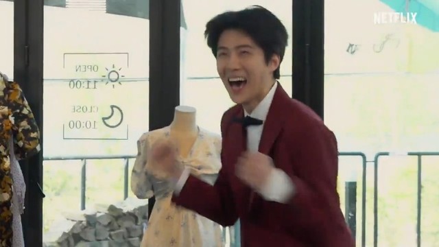 你买完东西。回来看到世勋在和别的女孩聊天。你把东西给工作人员。说了。一句话?辛苦了。?世勋。过来了。看到你