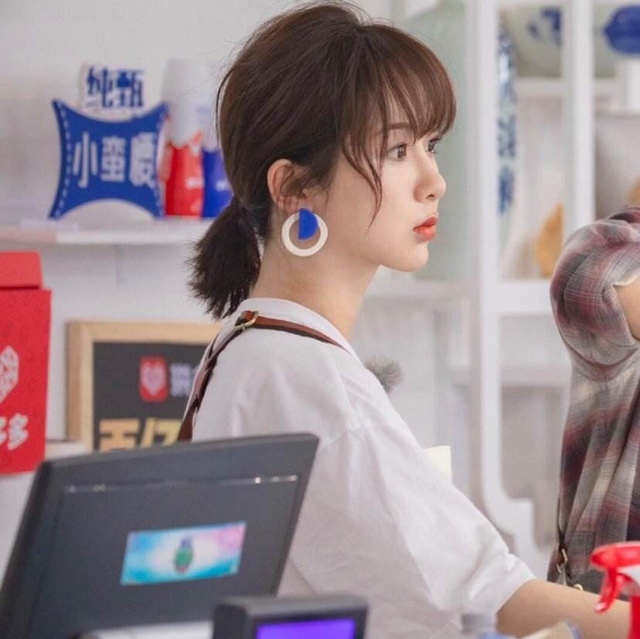 柘妍穿着清新的白衬衫和背带裙,扎上了低马尾。整个人看上去非常的清新甜美。