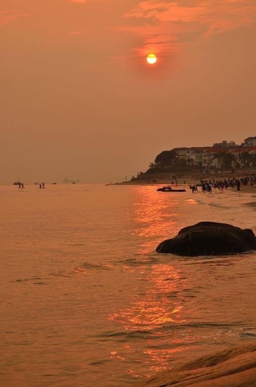 两人看着眼前的场景,都被吸引到了。认真的看着黄昏的沙滩。欣赏着它带来的那种震撼又柔和美。