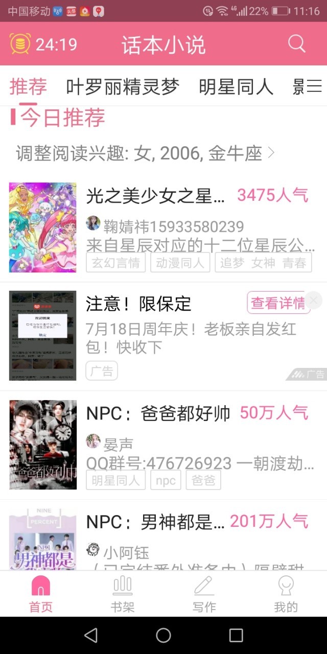 作者大大首先恭喜恋爱人气破九千了!恭喜恭喜!可喜可贺啊😊没有网费我的努力😊但是,粉丝们嘛去了?没有胀啊。不过对我没关系(=^▽^=)只要有人看我的书就可以了😊我就是这样容易满足的人!