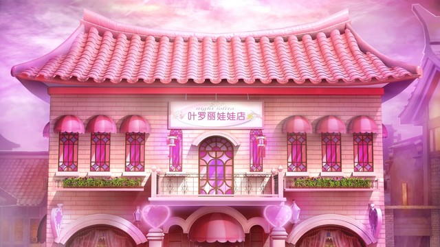 女孩在花瓣的指引下,穿过了一条狭窄的小道来到了一家娃娃店的门前望着眼前这唯美梦幻的叶罗丽娃娃店,她立马被门前橱窗中的娃娃所吸引指尖轻触橱窗眼里闪着星光……
