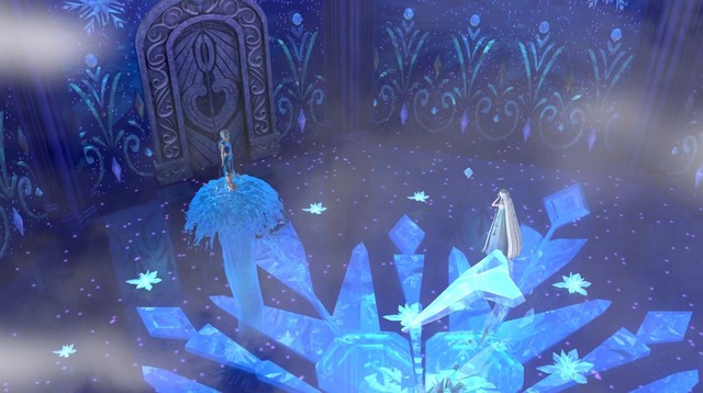 一个华丽的冰台升起,冰公主伫立在上面…居高临下的看着水王子。