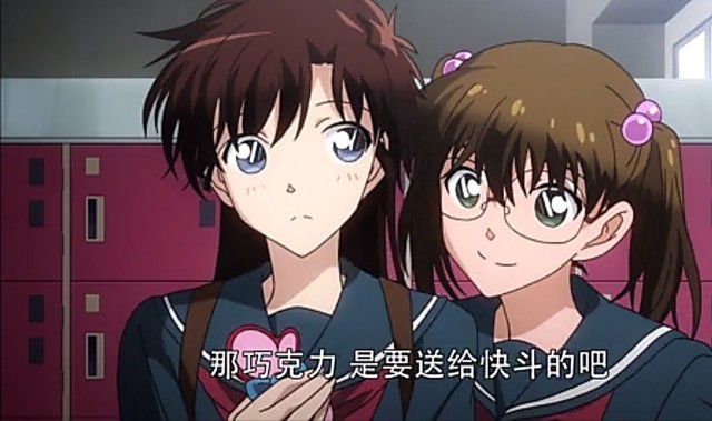 桃井惠子快斗同学刚才很开心地跑走了哦!那个巧克力是要给快斗同学的吧!你这家伙