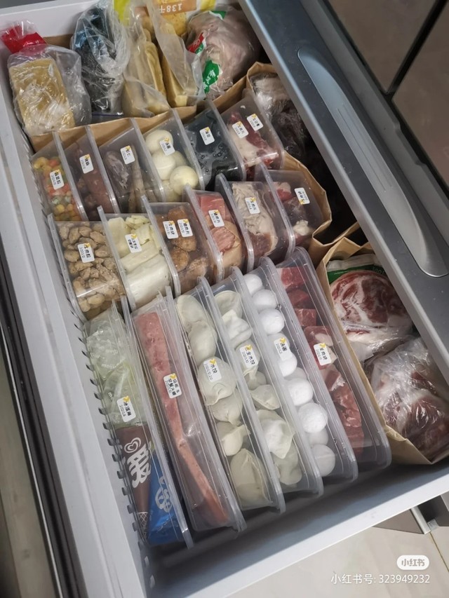 君岁安就是冰箱下面还有一个抽屉可以拉出来,里面的话全都是各种就是速冻食品。