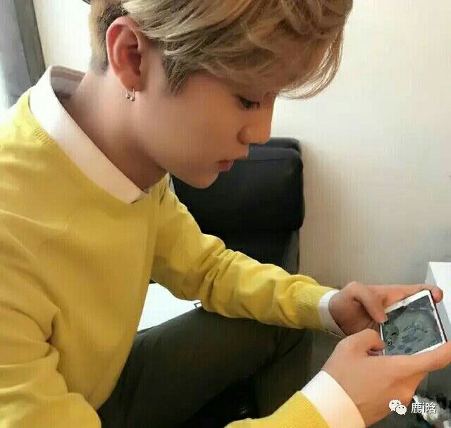 鹿晗也从楼上下来了,安静的坐到沙发上玩着手机。