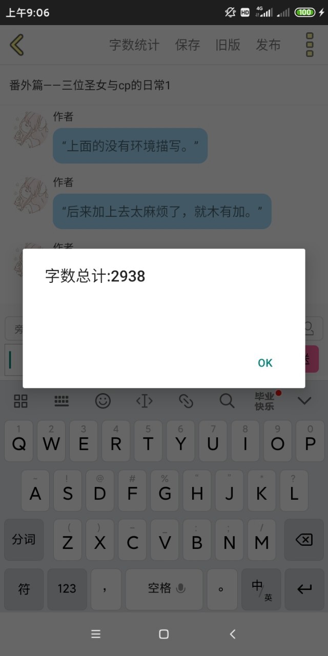 作者“这篇番外写了接近三千字了。”