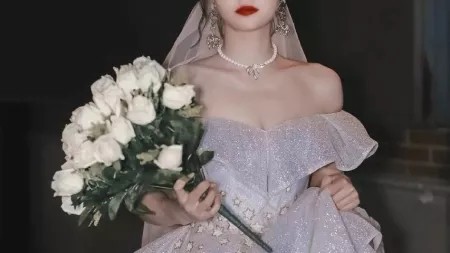 换装完毕后,乔屿念轻轻地带上头纱,等待着主持人cue流程.
