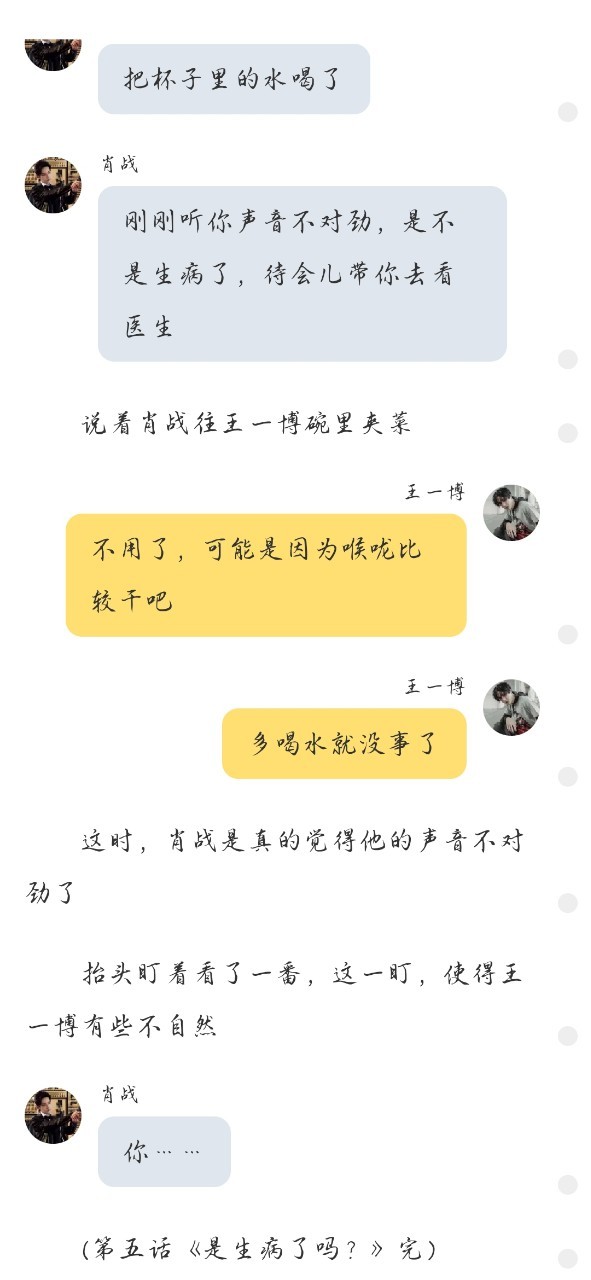 肖战还是盯着王一博的脖子看,不知不觉的靠近了些