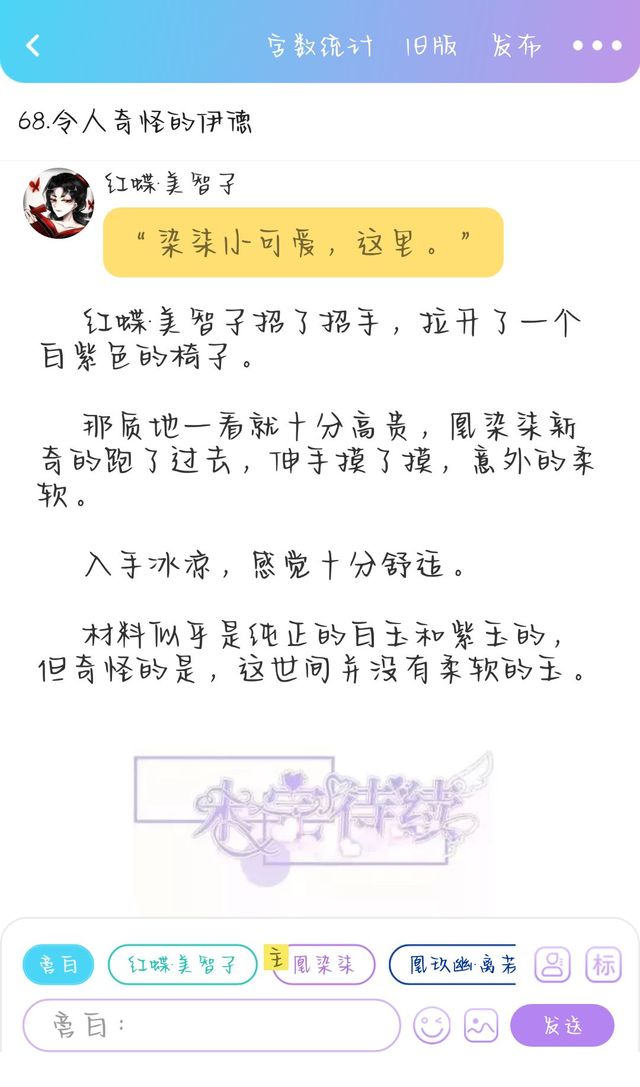 红蝶·美智子仗着刚给凰染柒拉出凳子的先机抢占了凰染柒左边的位置。