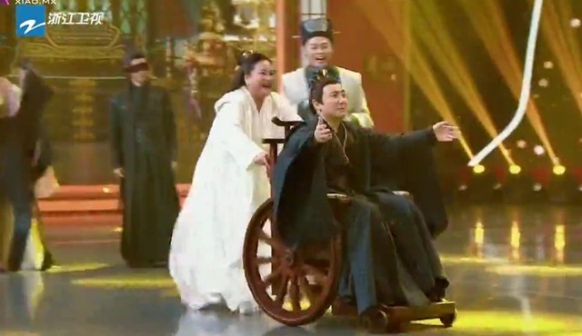 沈腾滑稽的推着轮椅