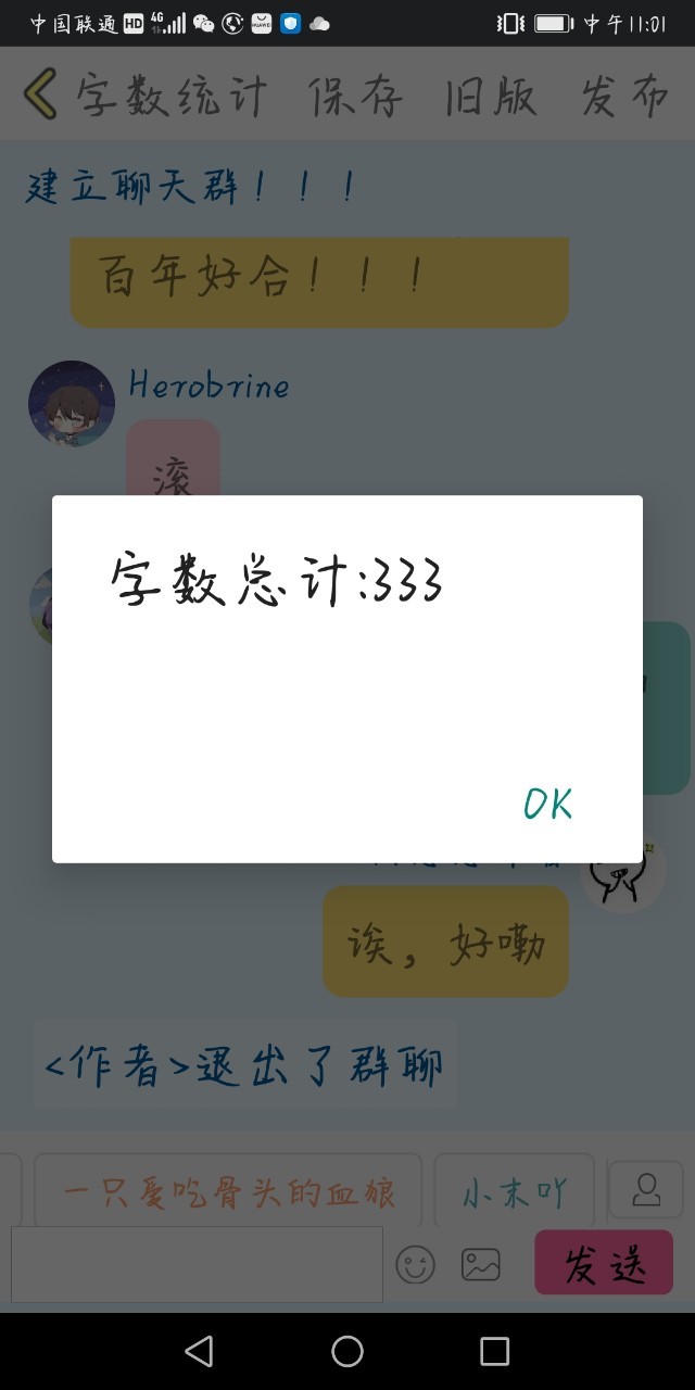 <作者邀请实体303酱,herobrine,恐惧吖,一只爱吃骨头的血狼,还有小末吖进入群聊>