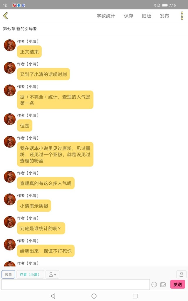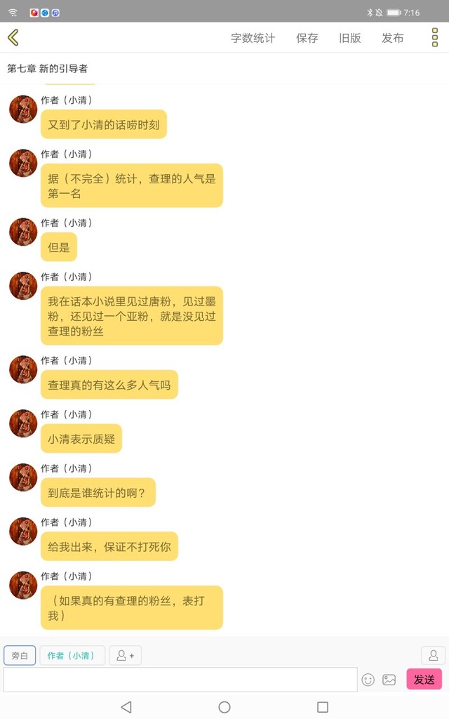 作者(小清)话本小说真的好奇怪呀,连续两次发不出去。小组里显示我达标了,但是我在书上看不见第七章