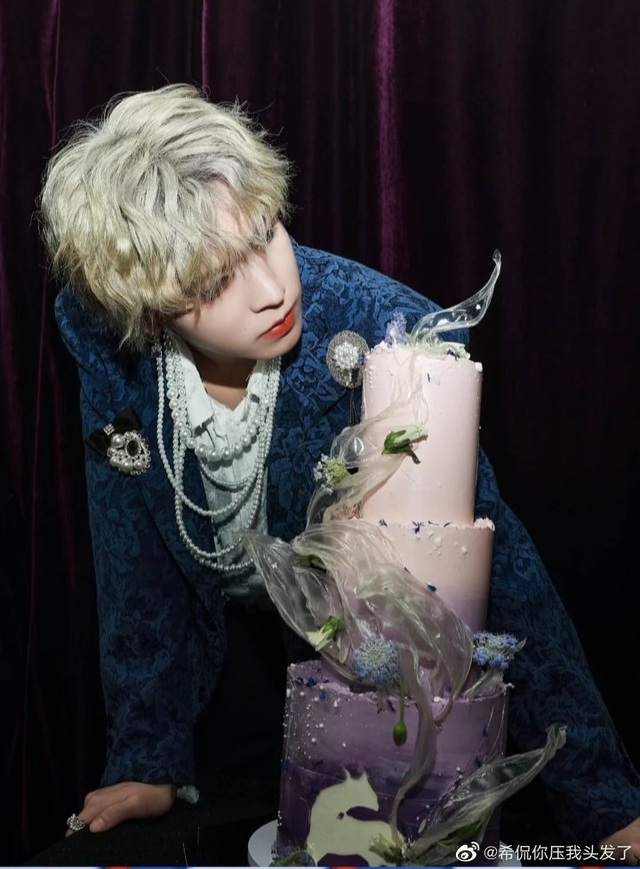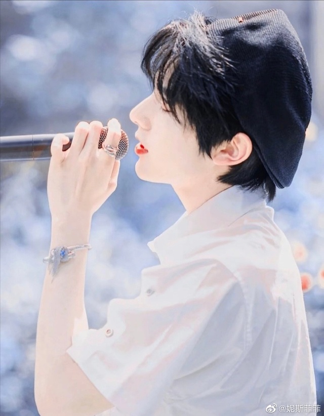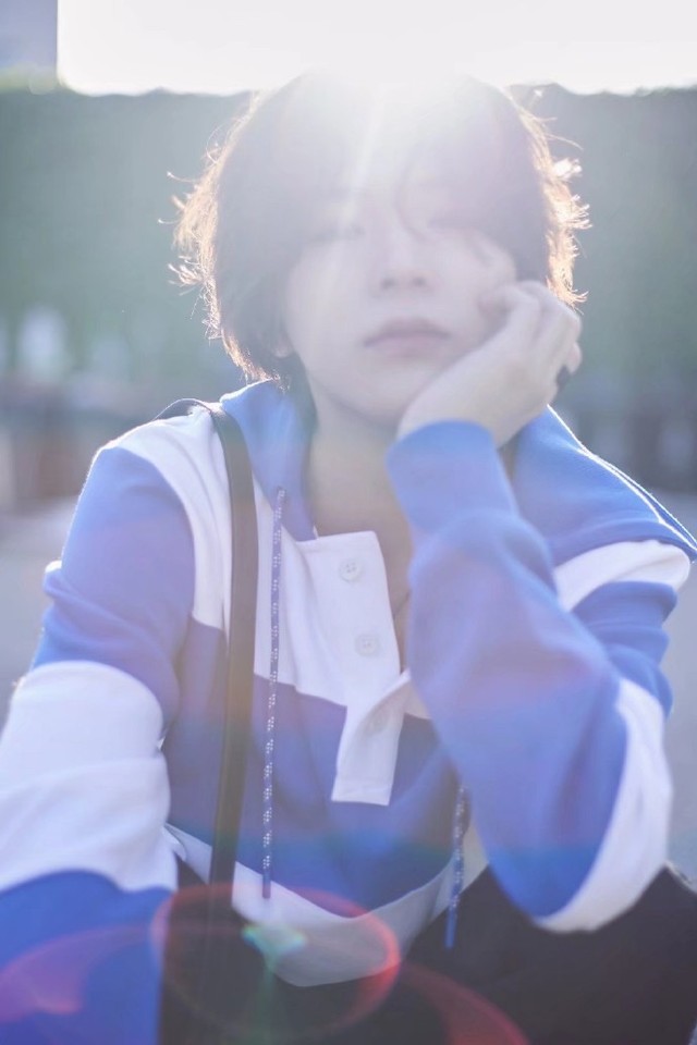 他今天的装束很是好看,蓝白条纹的衬衫,头发也被卷的蓬松,感觉很好揉很可爱,给人一种焕然一新的感觉。