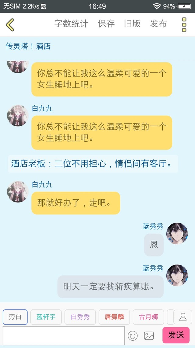 白九九我告诉你,不许进我的房间。