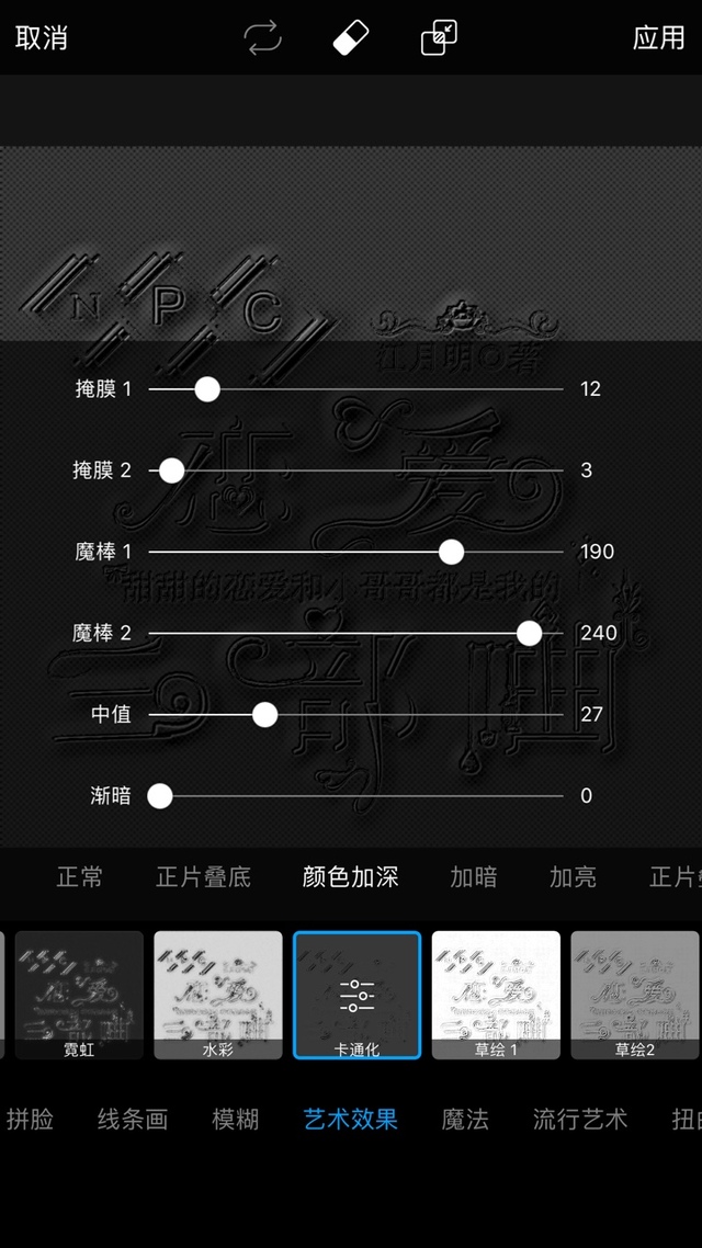 店长.月明点击特效-艺术效果-卡通化-加暗,数值如图,应用:
