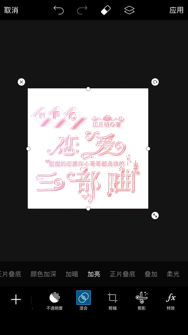 店长.月明添加颜色卡,放大盖住字设,混合,加亮,应用: