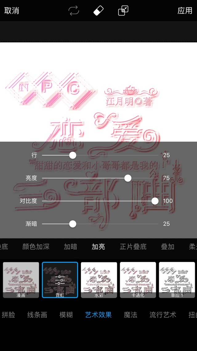 店长.月明特效-艺术效果-霓虹,加亮,数值如图,应用: