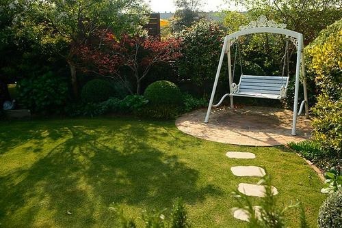 坐到一个秋千上,抬头看看天空。