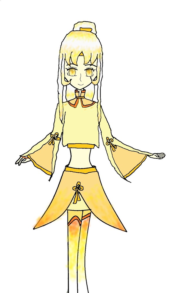 服装:就像上面那样,颜色。。是金黄色和白色为主