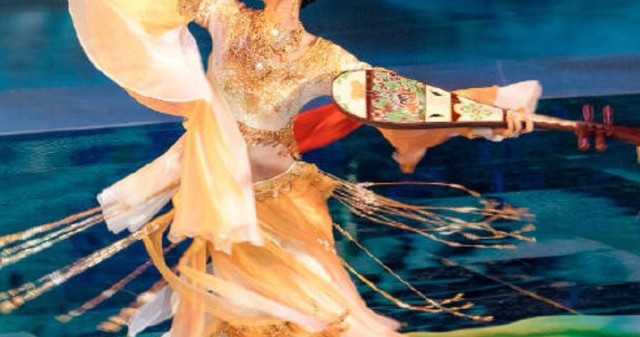 天舞不好,(快速拿过一旁的琵琶跳上台去,接着奏曲)