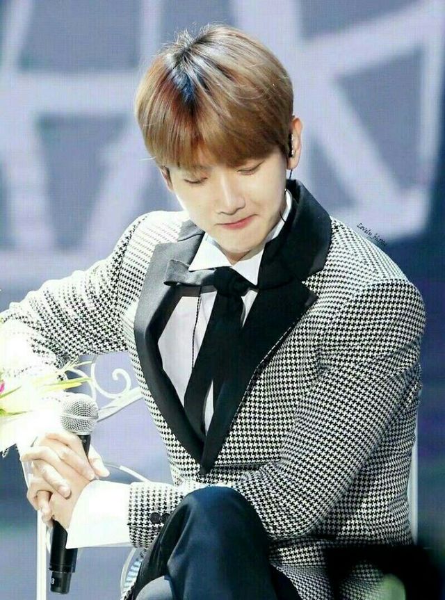 他穿上了西装、皮鞋,黑色的领带整整齐齐的打好。西装将他身材的曲线勾勒的堪称完美。边伯贤的刘海向斜梳,露出那双颜落最喜欢的眸子。