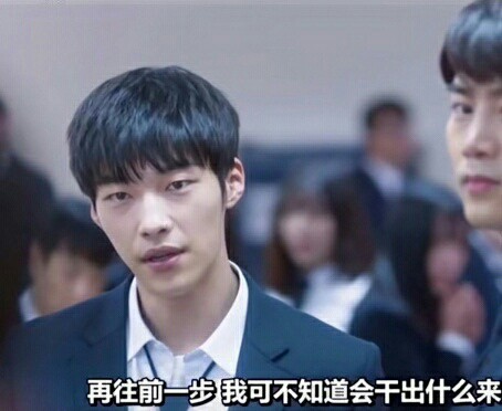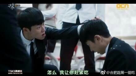 混混的跟班看见韩尚焕的校牌立马拦住混混头