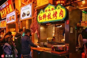 男孩嫌弃的看了一眼烧烤摊子。