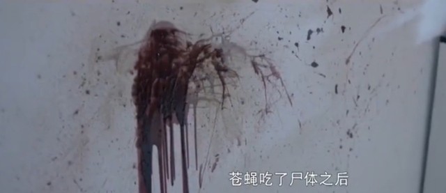 任豪苍蝇吃了尸体之后,沿着血迹在墙上,物体上,到处乱飞,把排泄物弄的到处都是