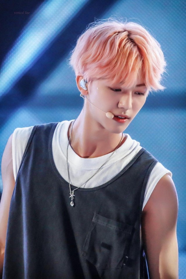 今天cody姐姐很在线,罗渽民无袖的灰色背心配上紫色的裤子,粉色的头发和他的脸简直绝配。