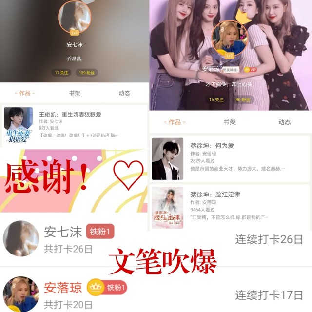 作者(扶长越)两位小姐姐打卡日数比较多,所以特别在文里面感谢一下♡另外他们也有写文,文笔吹爆哇!