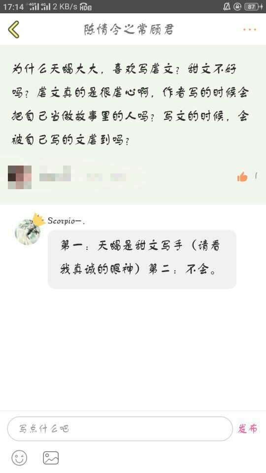 看到了吧!我出息了!呜呜呜这是我写文生涯的一大转折点啊(小声bb:虽然有点沾天蝎姐姐的光)!我不禁默默反思,难道我语出惊人·寒就适合这种沙雕气氛的文儿(阿常小声bb:你是不是沙雕你自己心里不清楚吗……我:乖乖阿常,我可听到了哦~阿常:寒哥我错了)