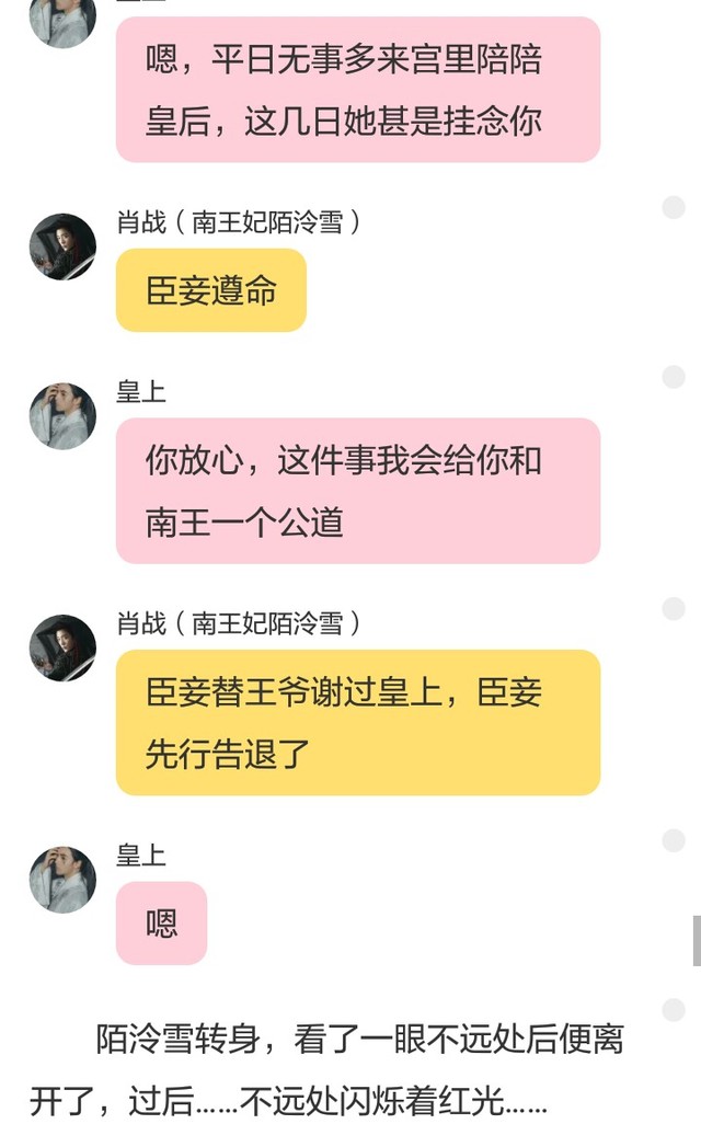 南王妃陌泠雪〔打断〕白先生,你不必劝我了,我既然怀了他,就有义务把他生下来,让他看看这大千世界,如果我现在结束他的生命,对他不公平,对夜慕岩也不公平……