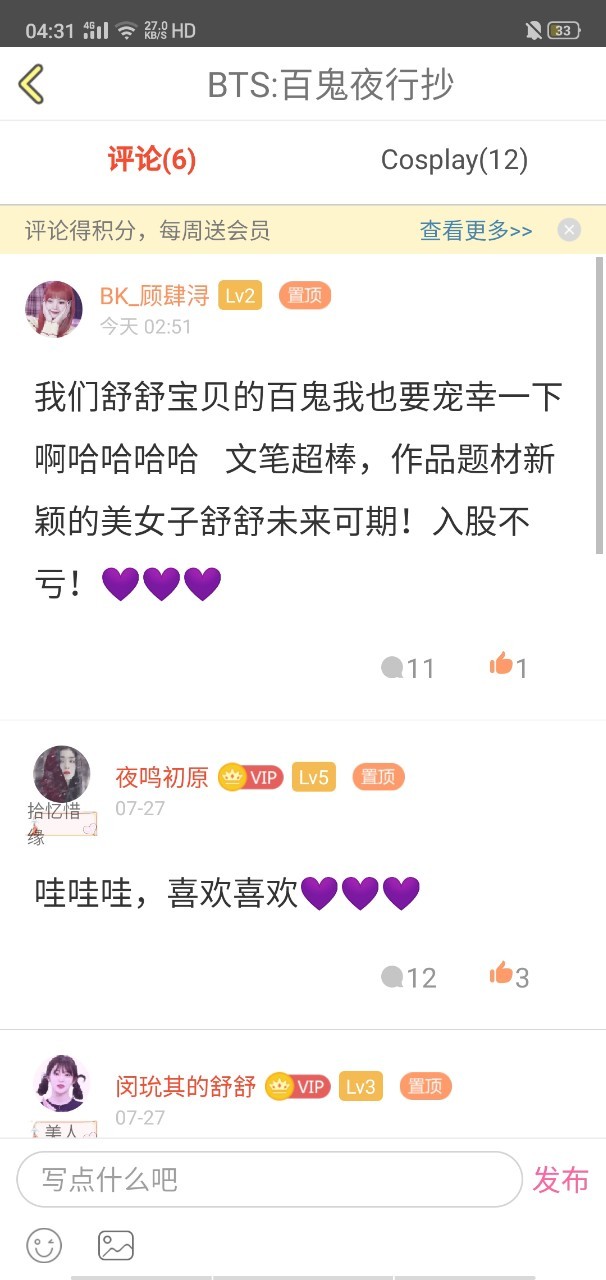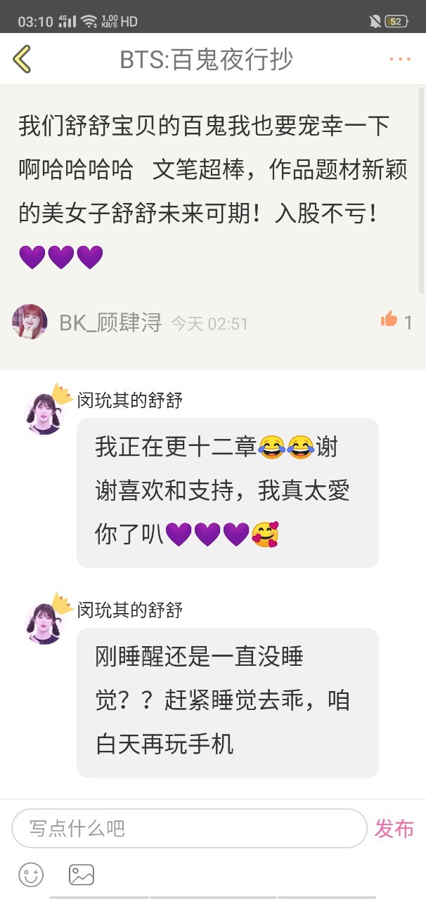 舒舒感谢顾甜心和夜鸣初原对作品的喜欢💜💜🥰