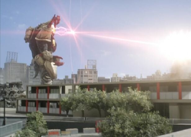 巴克西姆[从骷髅哥莫拉后面出现,双手喷出火焰击中它]