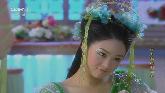 下面站着红、橙、黄、绿、青、蓝紫七个女子。