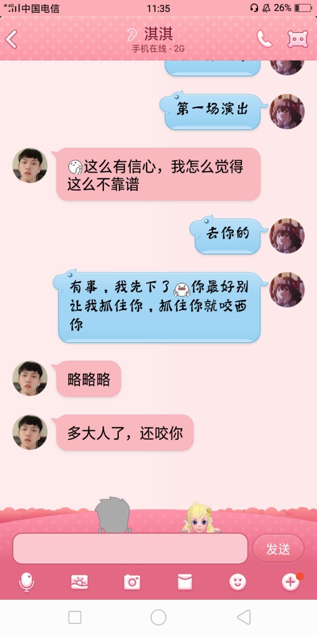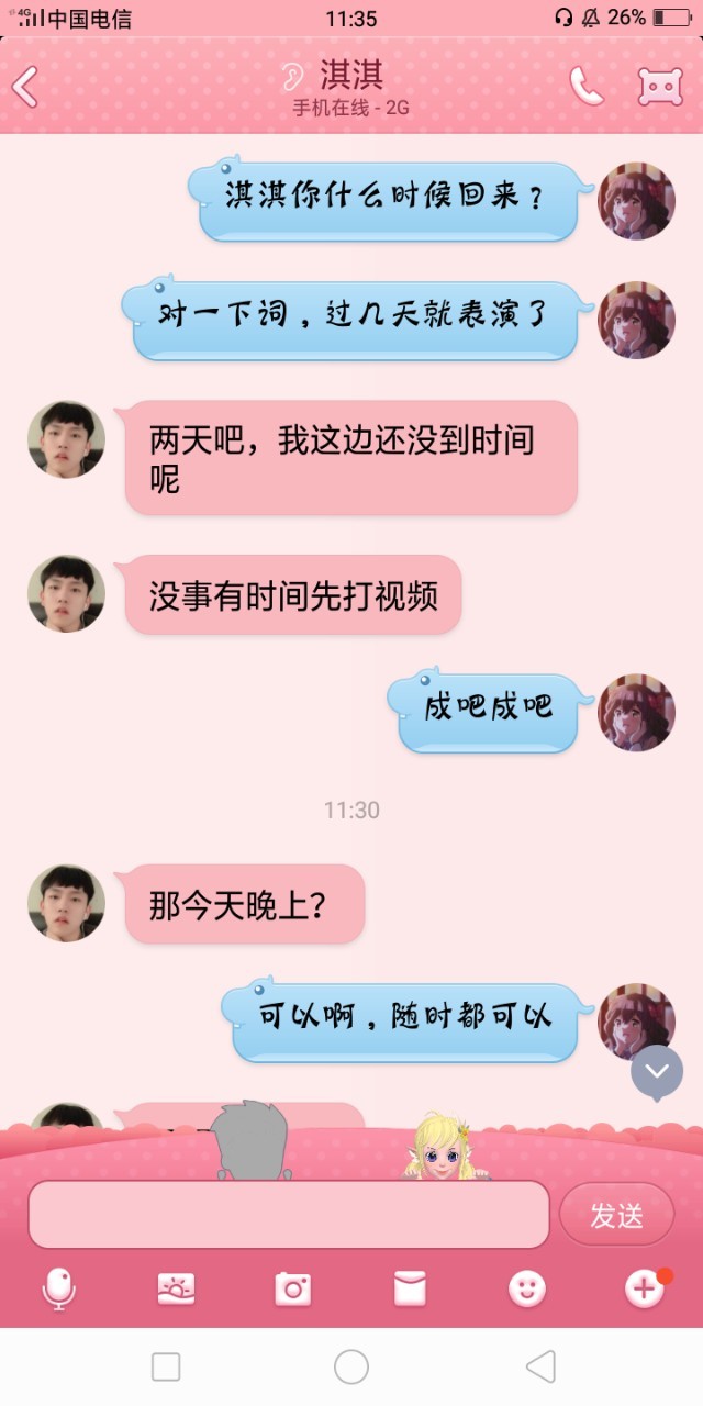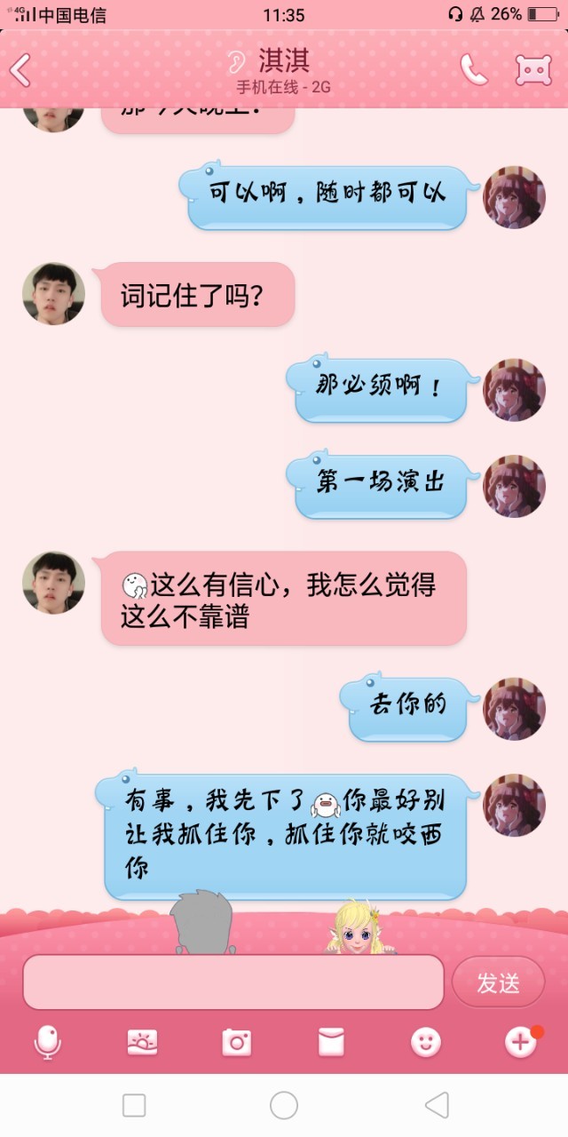 楠柠于子淇,过几天我不是有小剧场嘛,说的今晚对一下词,毕竟第一场演出