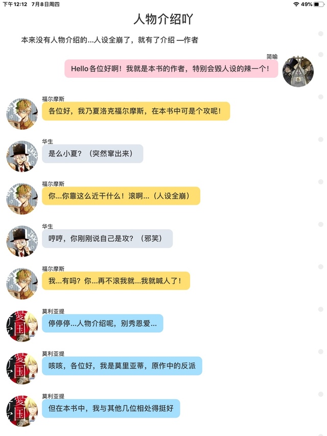 作者小小人物介绍可以不用写,人物的性格,攻受可以体现在正文里