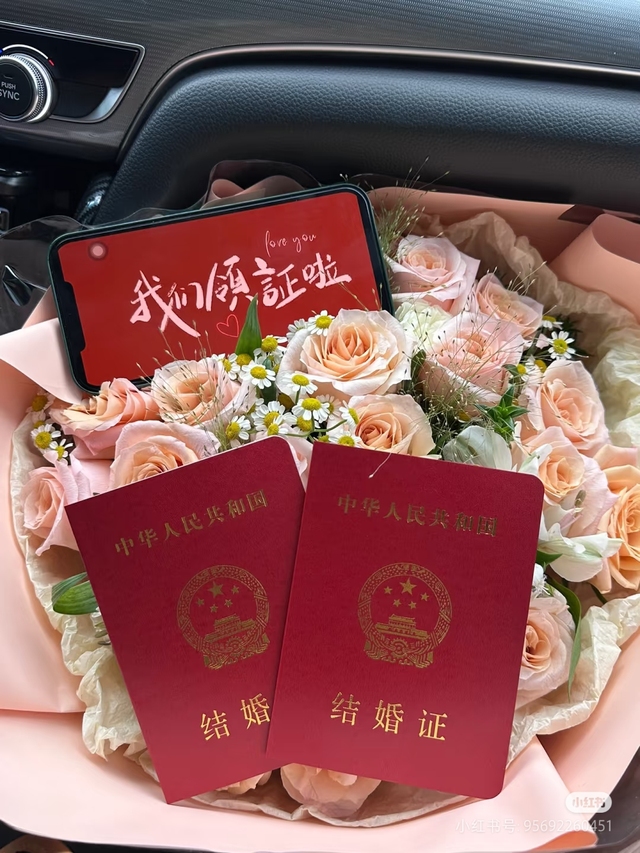 第2天,去医院前,何建一先把江晓琪带去了花店,给江晓琪买了一束粉白色玫瑰,而后两人拿着户口本和身份证去了民政局领了结婚证。
