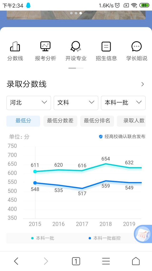 然后我刚才查了一下重庆对河北考生的录取分数线