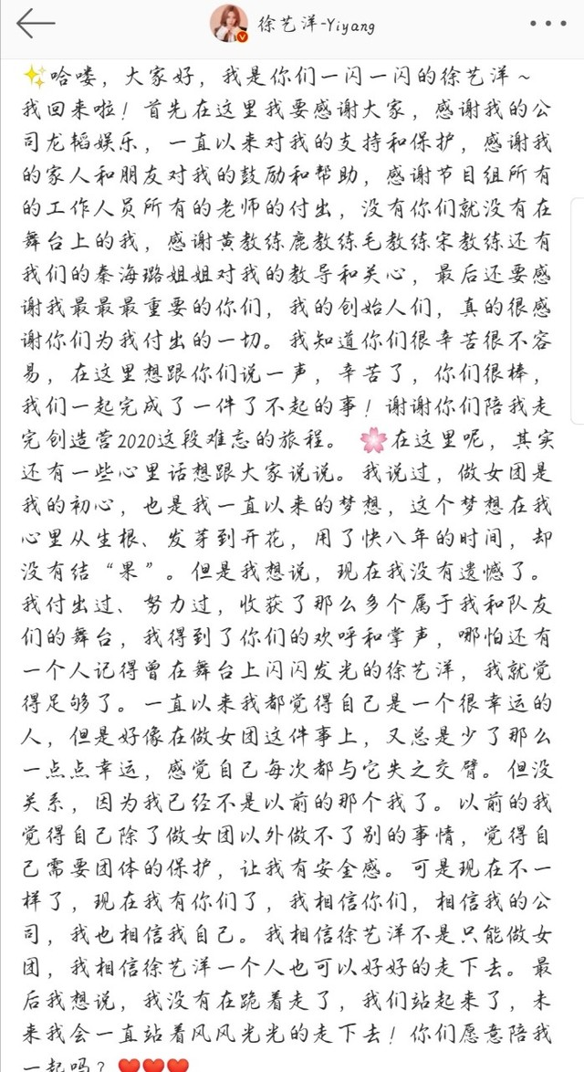于惠:“艺洋已经23了,这一次没有出道,接下来你是想以solo歌手出道还是演员?”