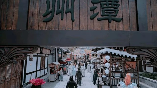 来到大街上,蓝忘机独自往前走,魏无羡拿着面具吓唬蓝湛