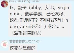 因为是在QQ上骂的,最近家长把我QQ号封了,不能截图