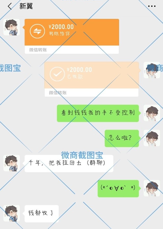 一按……棒!2000!这人转了2000!千年推到聊天窗口定睛一看——新翼转来的。