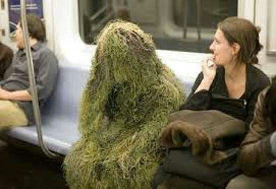 莫非还有,要吃鸡就去其他地方,别在地铁上吓人,穿着吉利服,不把人吓死才怪(▼皿▼#)